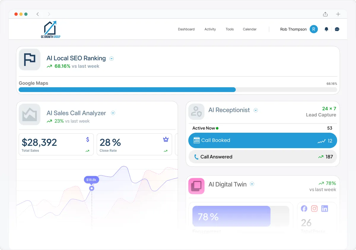 From getting found to closing the sale, our AI-powered solutions work together to help you dominate your local market.